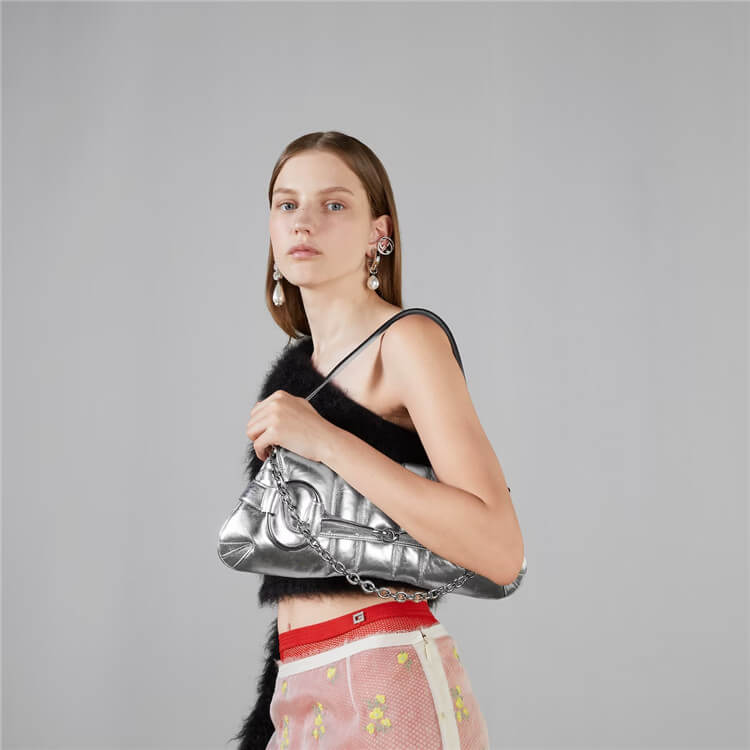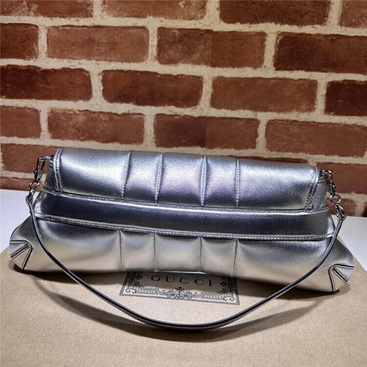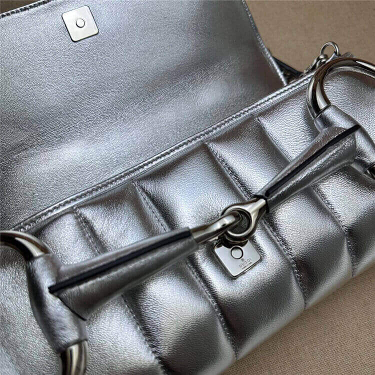 Silver metallic quilted leather