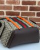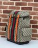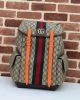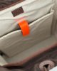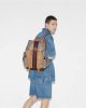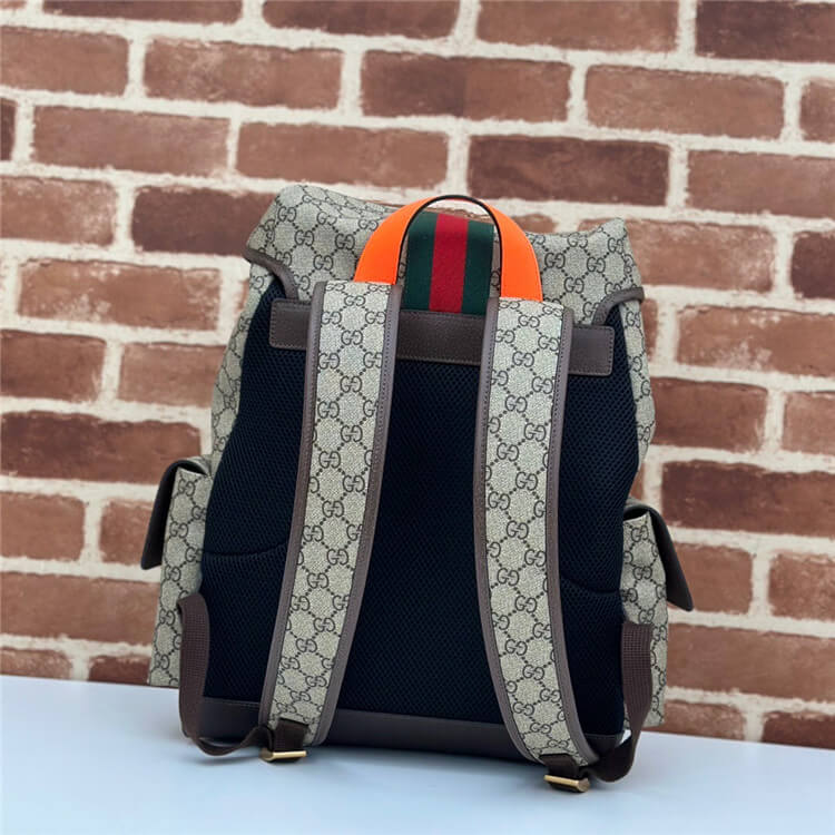 Drawstring and flap closure with leather buckled straps and additional magnetic closure for easy opening