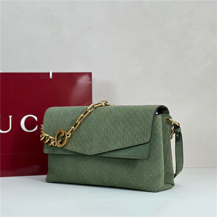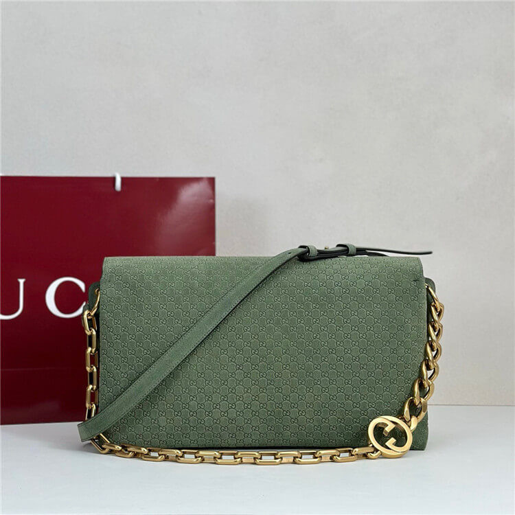 Sage green embossed GG suede