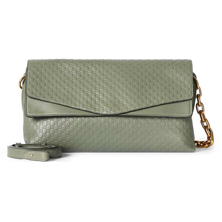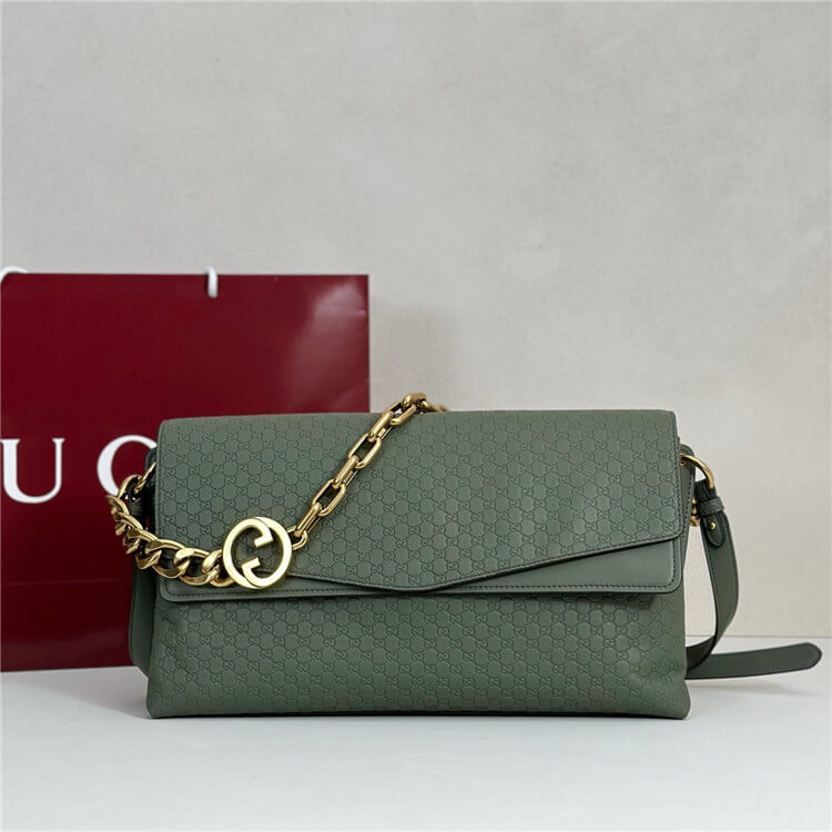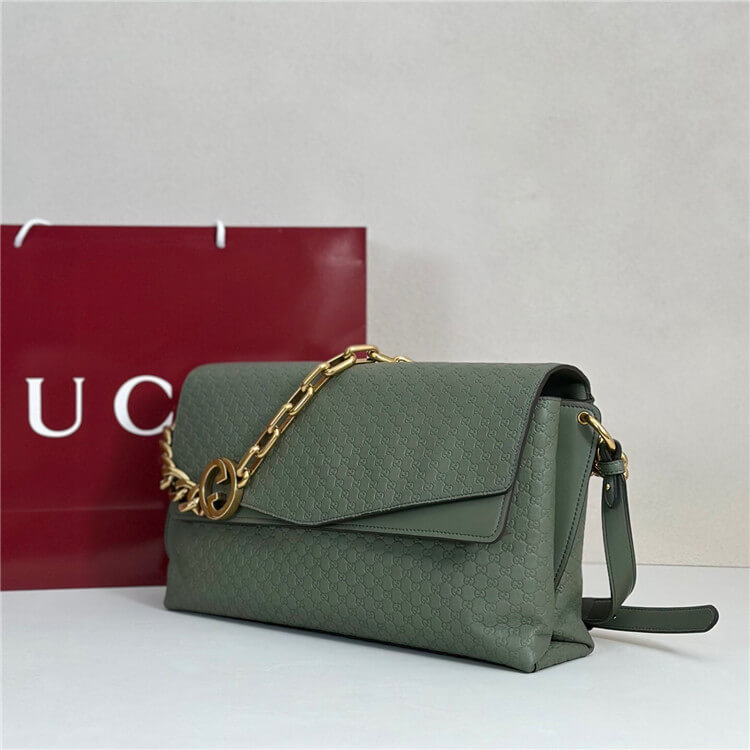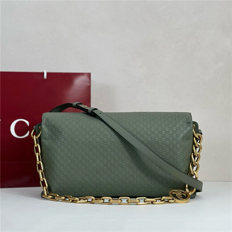 Sage green embossed GG grainy leather