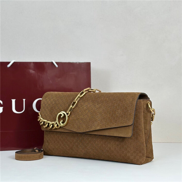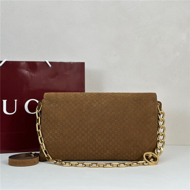 Brown embossed GG suede