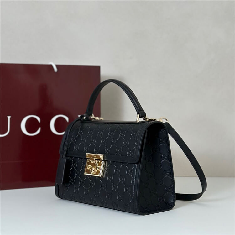 Black embossed GG leather